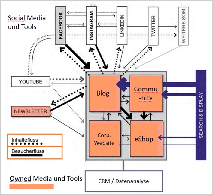 - Evtl. ein Content Management System, das als zentraler Content-Hub für die Herstellung und das Ausspielen der Inhalte dient