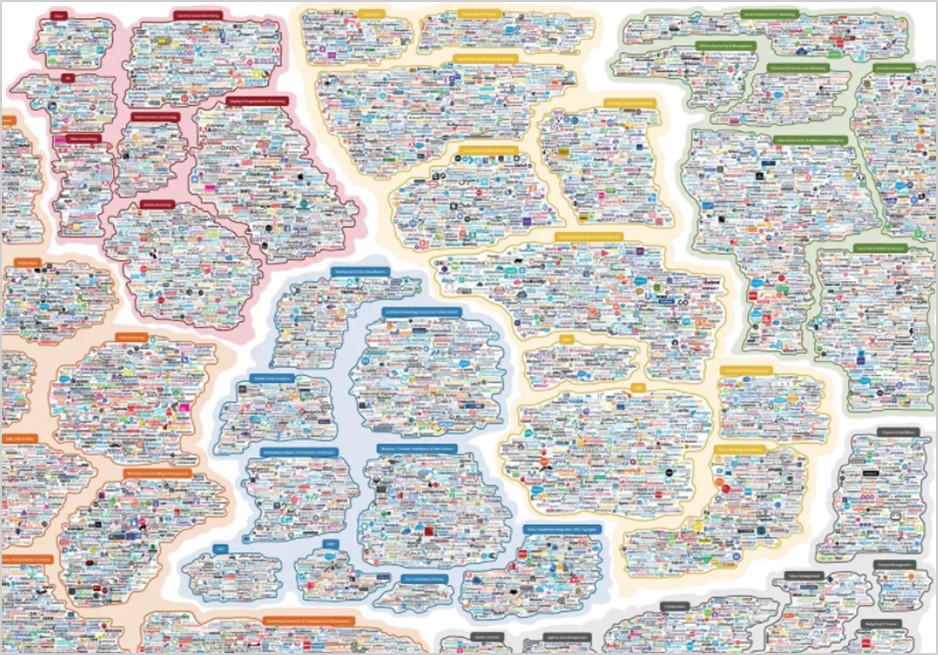 Schaut man sich die MarTech-Landschaft der letzten 20 Jahre an, stellt man ein exorbitantes Wachstum und damit eine totale Fragmentierung fest. 20% der Technologien gab es vor einem Jahr noch nicht. Wie soll man in diesem Markt den Überblick behalten?