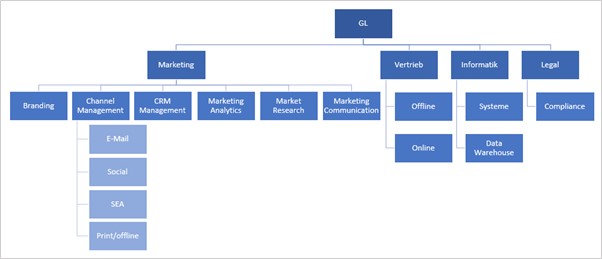 Beispielhafte Modell-Organisation im Unternehmen mit Rollen für Marketing Automation.